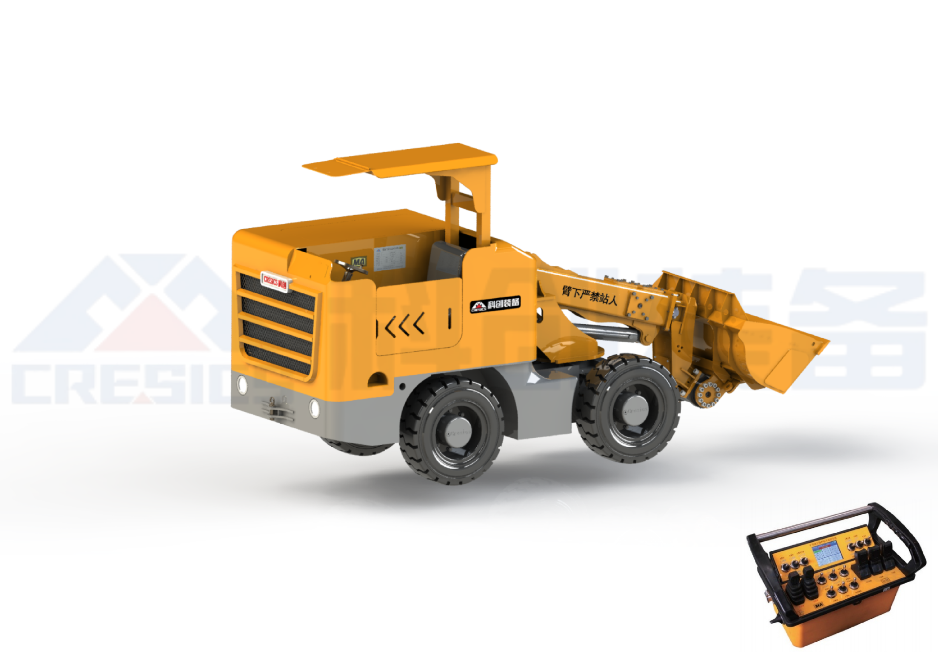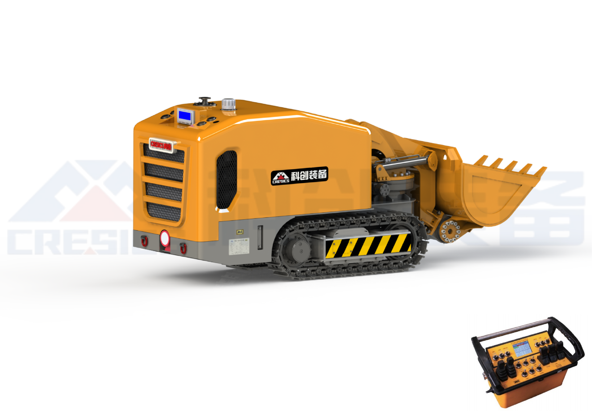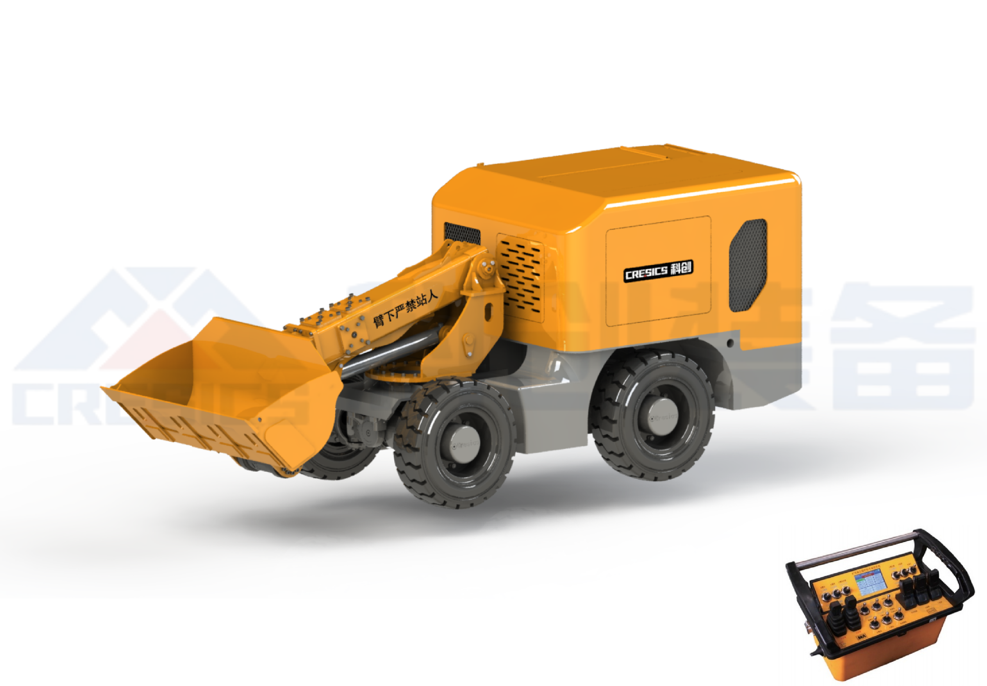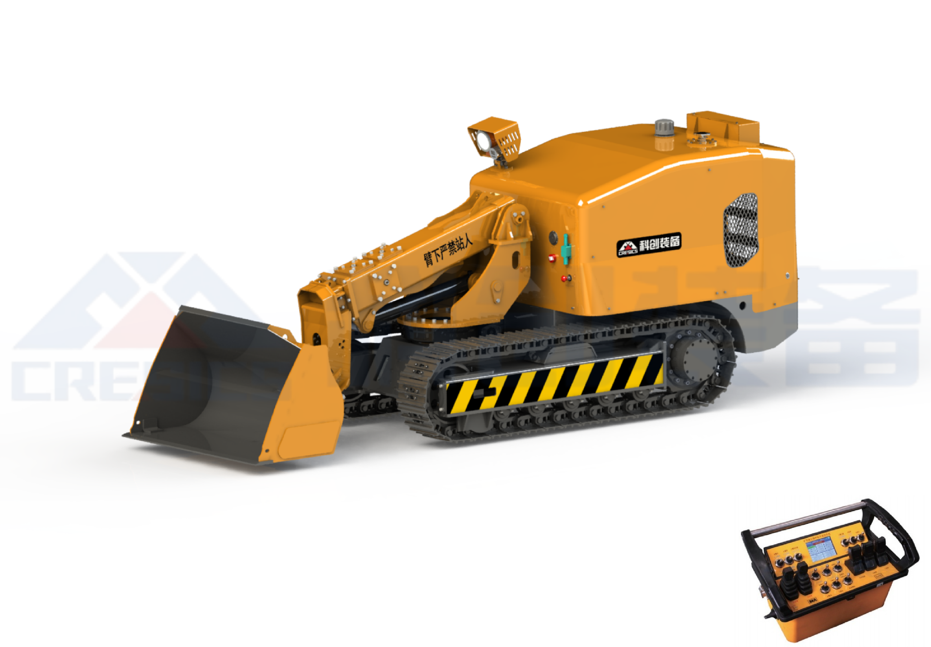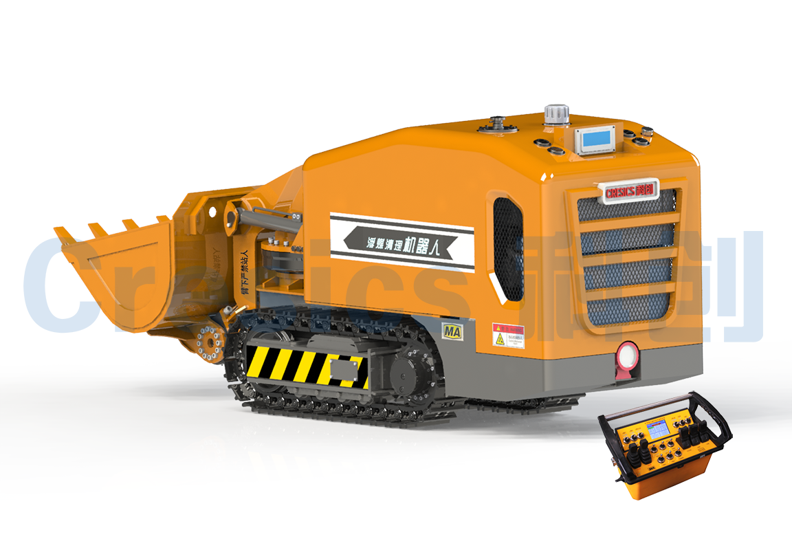 该机器人主要由行走机构、铲装作业机构、防爆柴油机动力系统、电控系统等部分组成,可实现无线遥控 操作、铲装作业、动臂回转、铲斗侧卸等功能,能够较好的清理狭小空间的浮煤。