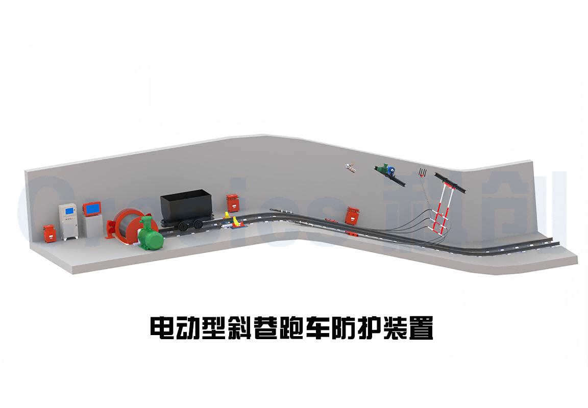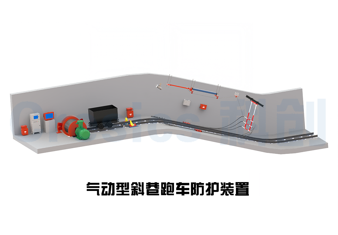 根据现行《煤矿安全规程》(2025 版)第 422 条的有关规定,为避免矿山斜井串车运输中,因把钩工摘挂 钩失误或断绳、脱钩等造成矿车跑车现象,斜巷内应安设跑车防护设施,其中,斜巷的上车场变坡点处应安设阻 车器,斜巷内应安设“常闭式”跑车防护装置,上述设备可有效的避免各类斜巷跑车事故的发生,确保了斜巷运 输安全。斜巷跑车防护装置是煤矿斜井提升运输的重要安全设备,安装在煤矿井下斜巷内,采用位置传感器获取 与绞车同步运行的控制信号,使挡车网处于“常闭式”防护状态,如因断绳、脱钩等原因而发生跑车事故,可采 用柔性缓冲器来进行有效拦截。