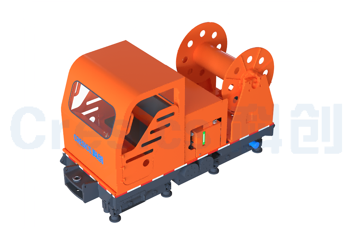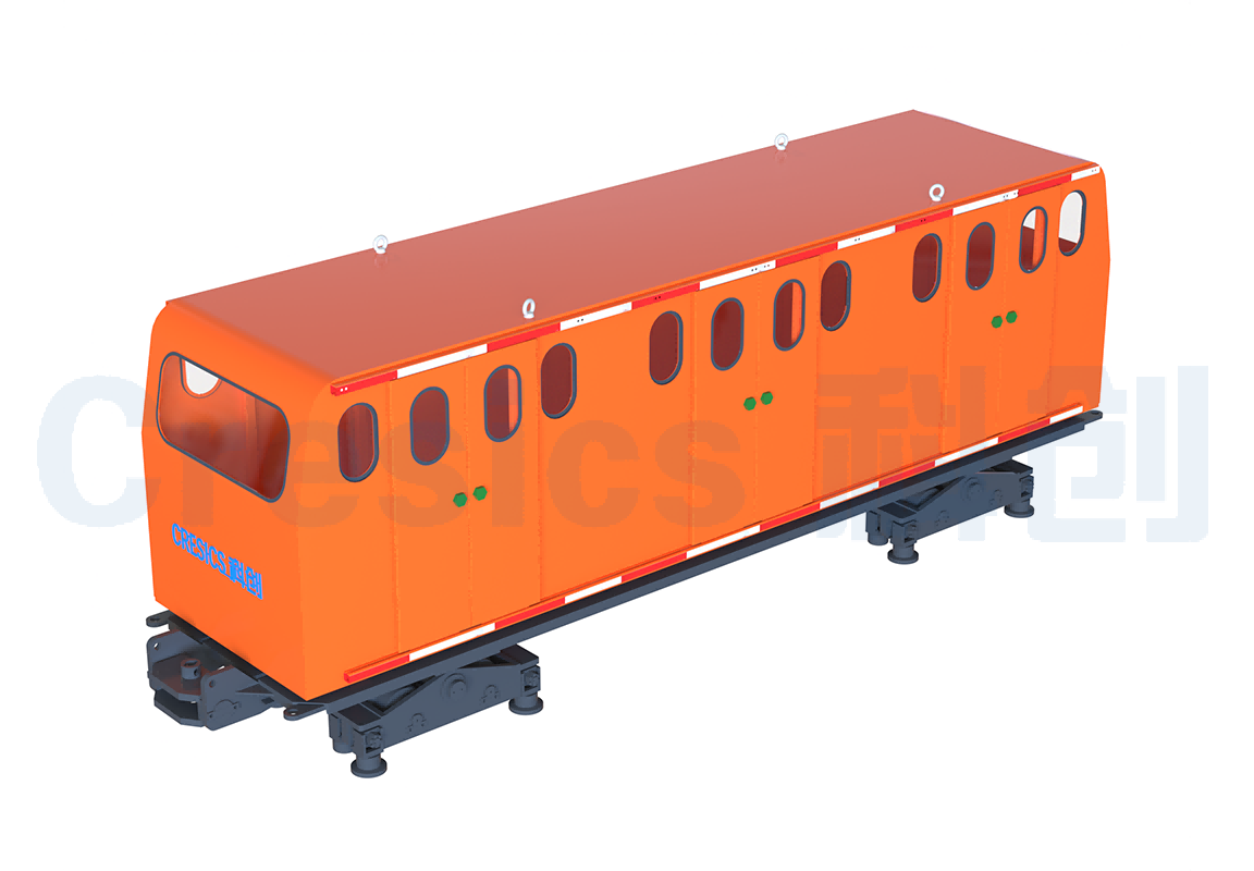 KSP 型煤矿井下钢丝绳牵引卡轨车,适用于煤矿井下普通轨道且以钢丝绳牵引的一种普通轨道卡轨运输设 备;适用于长距离、大倾角、多变坡、大吨位、多弯道、起伏巷、阴阳轨工况条件下的工作面顺槽、采区上(下) 山和集中轨道巷等材料、设备以及人员的不经转载的直达运输;实现运输整体液压支架和矿井各种设备和人员 的一种理想装备;也可用于金属矿山的井下巷道和地面,坡度不大且有起伏变化的轨道运输,最大适应倾角不 得大于 20°。可实现在现有普通轨道上全列车的全程卡轨运行,具有不跑绳、不掉道、不翻车、超速自动制动 等优点,提高了人员、物料及设备的运输效率和安全保障,是矿山轨道铺助运输的绝佳选择。